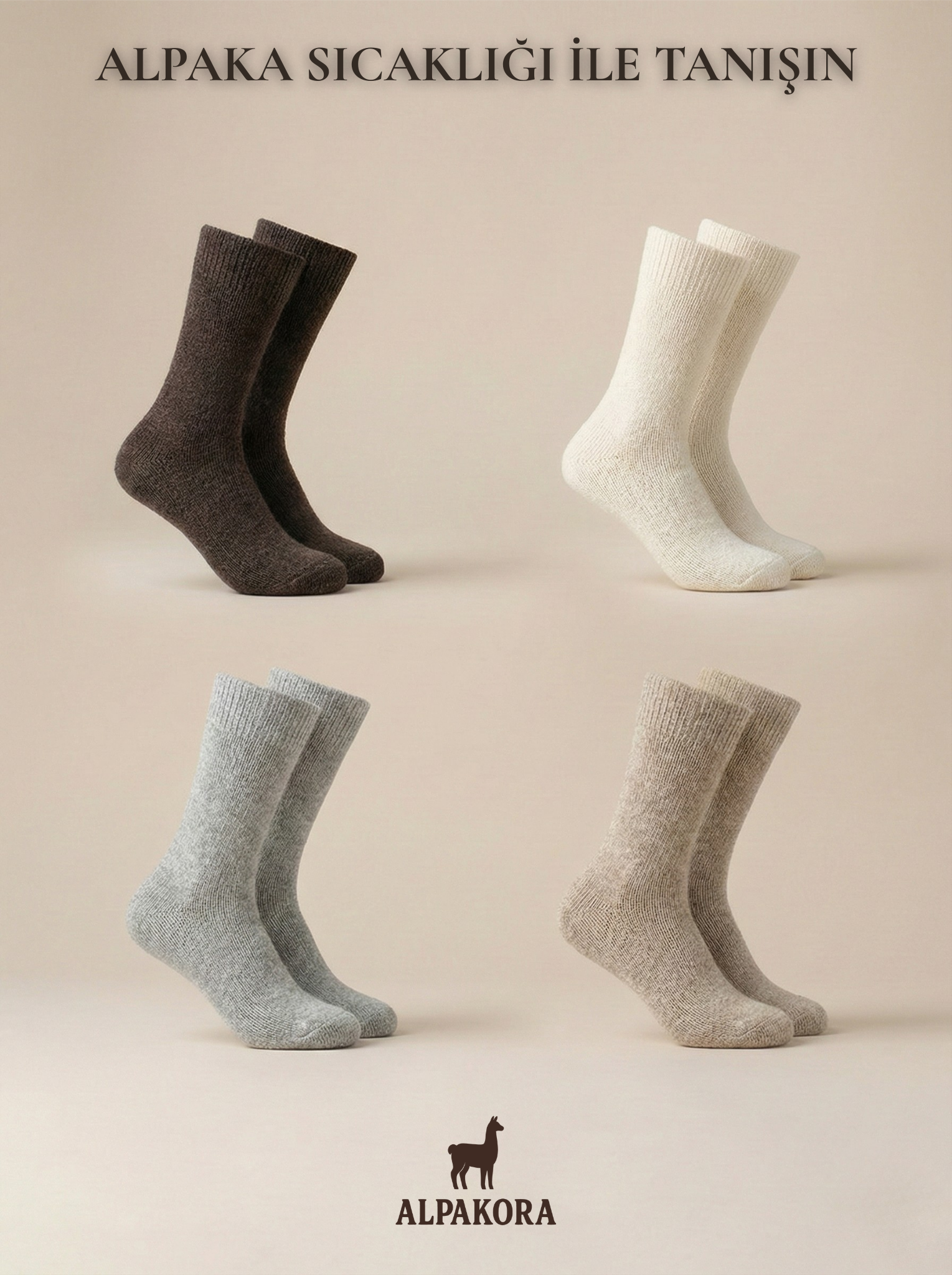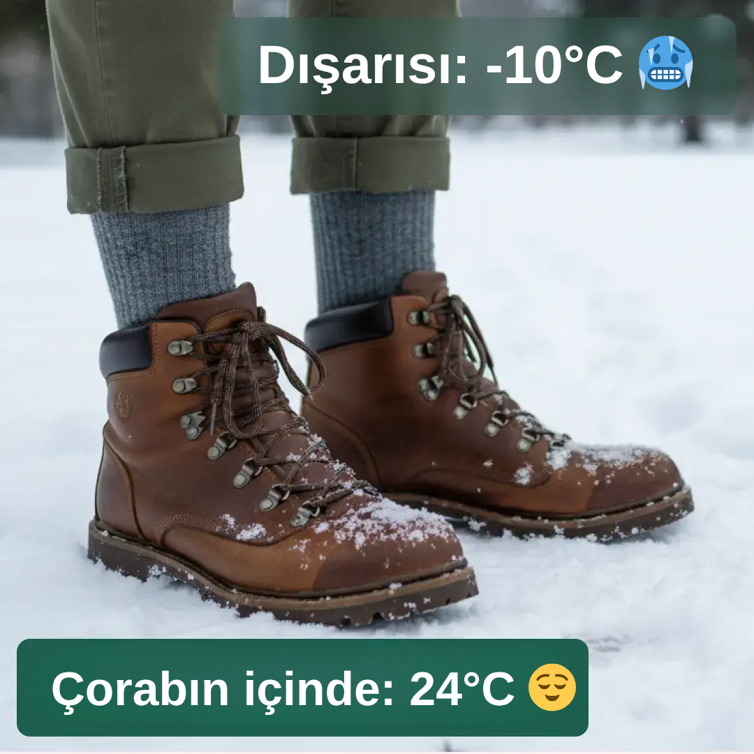 Gerçek alpaka yünüyle üretilen Alpakora çoraplar, -10°C’de bile ayak sıcaklığını 24°C’de tutar. Soğuğu unut, doğanın sıcaklığını hisset.